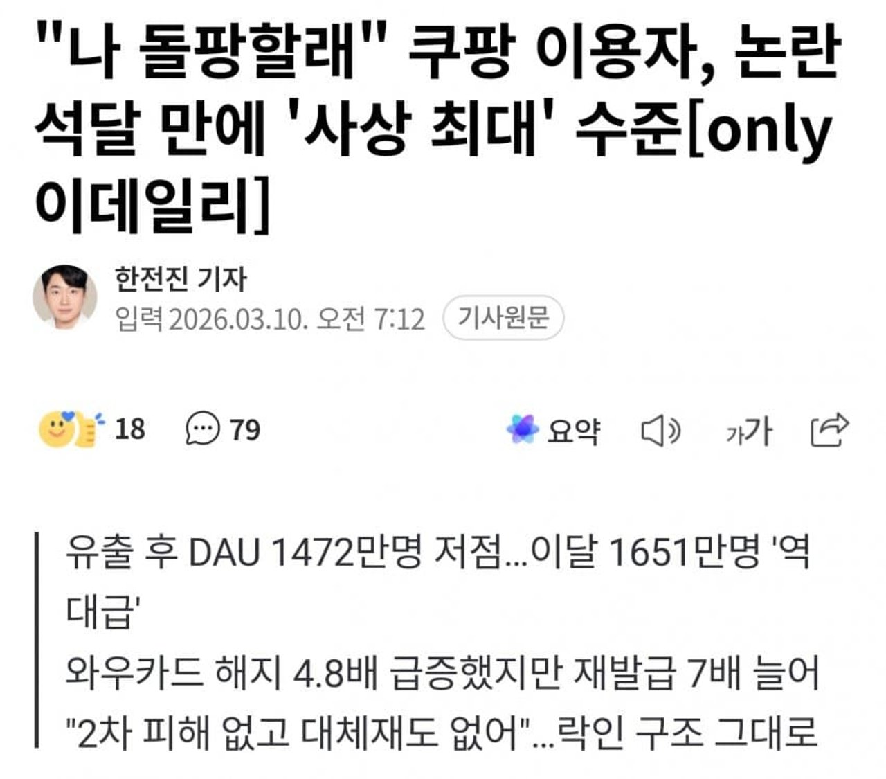 쿠팡 망하는거 맞음?ㅋㅋㅋㅋㅋ 돌팡은 뭐노ㅋㅋㅋㅋㅋ