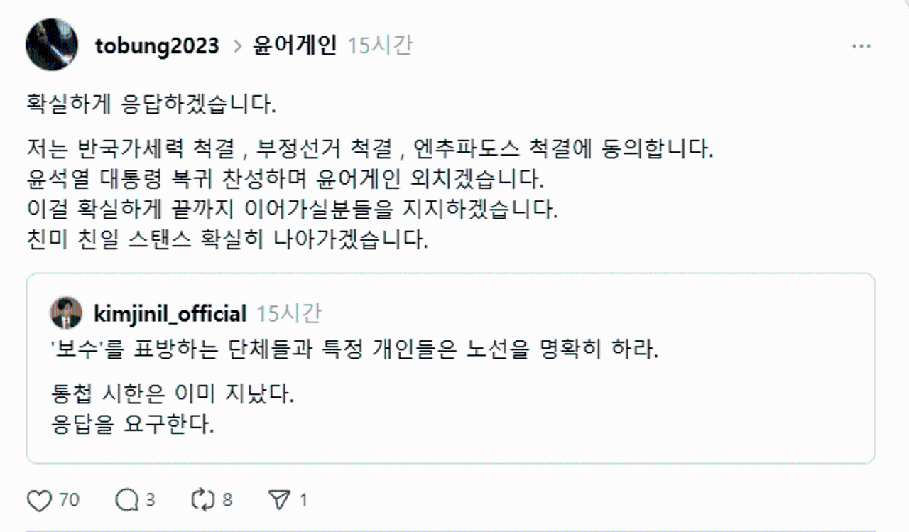 응 대놓고 반국가세력 척결 , 부정선거 척결 , 엔추파도스 척결에 동의하고