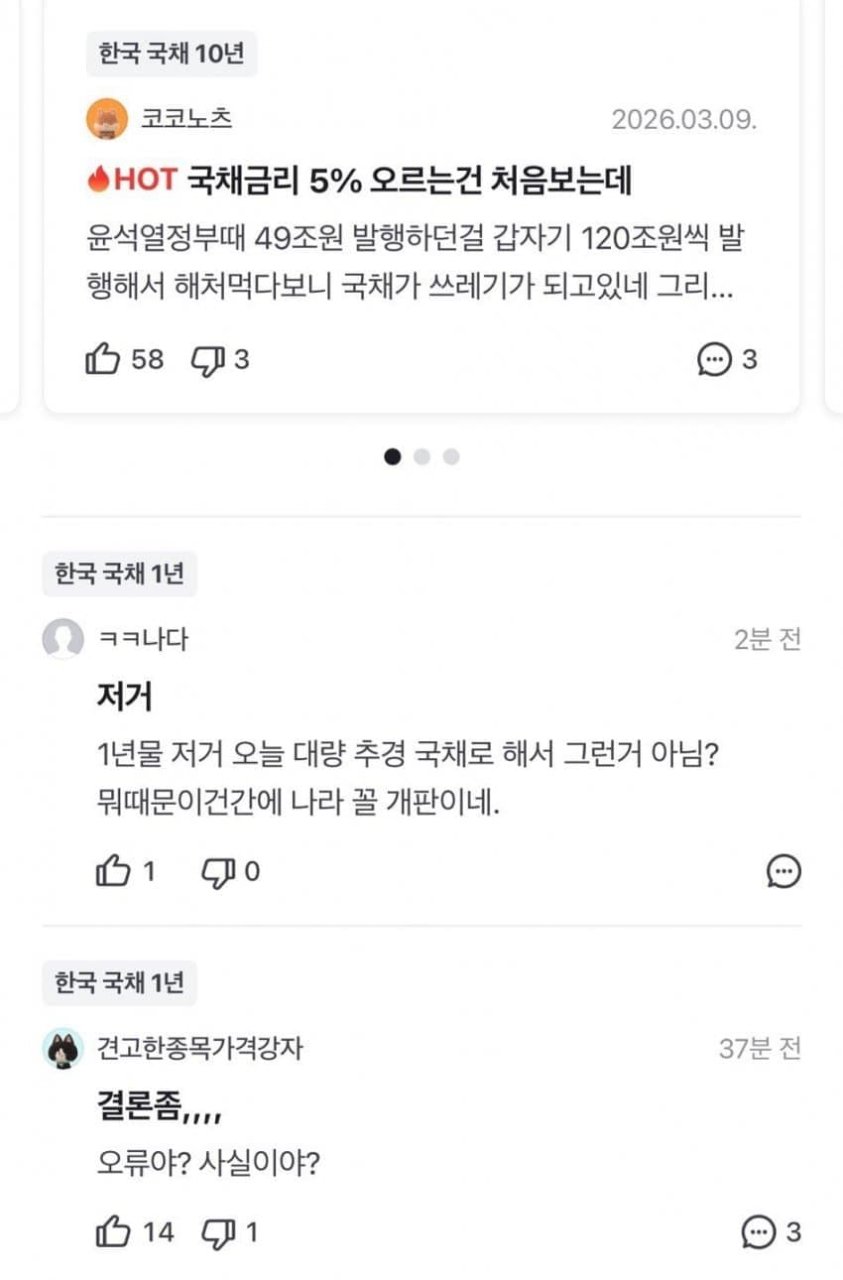 정부도 국채 찍을 때마다 이자 폭탄이라 추경하면 할수록 더 악순환
