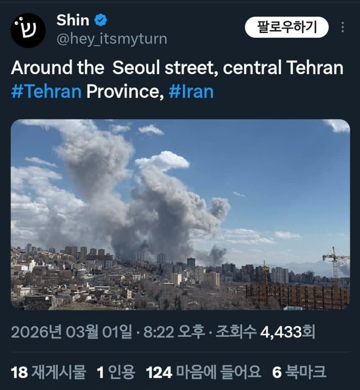 (속.보) 이란 테헤란 서울로 폭격