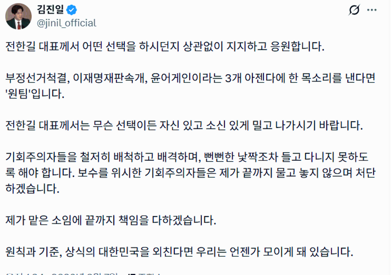 김진일이 개별적으로 최후통첩 날렸다는게