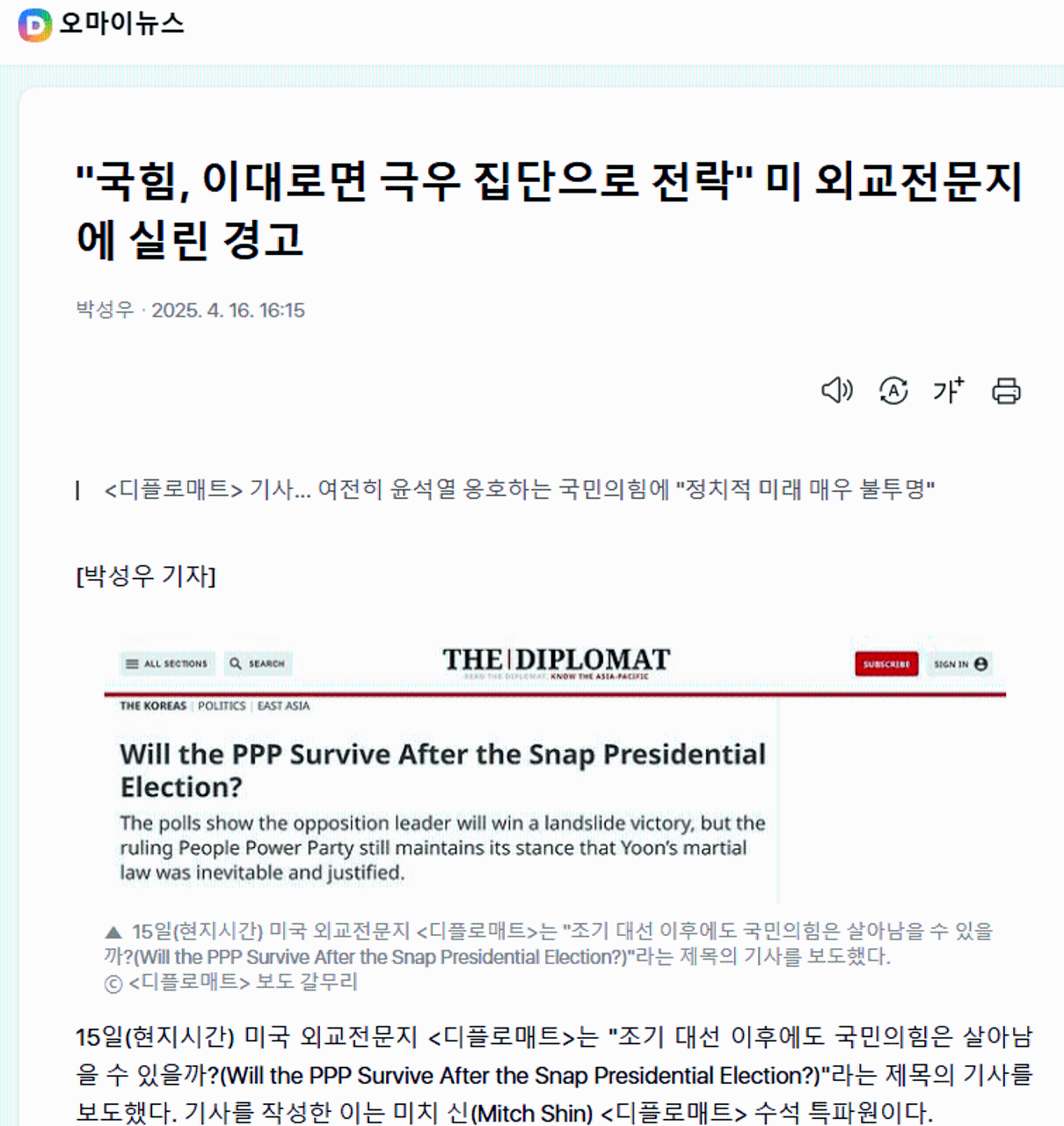 디플로맷 외신기자 Mitch shin에 대해서 더 알아보자