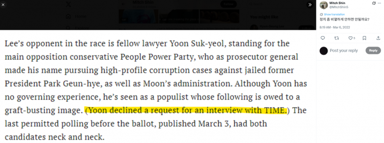 좌파 매체 타임지 인터뷰 거절한 게 왜 비열한 건지???